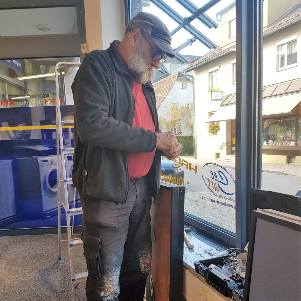 Noch bis Ende Januar 2019 ist eine kleine Auswahl der Werke des Künstlers Heiko Holdenried in unserem Kunstschaufenster bei Euronics Hagen in Wilhelmsdorf zu sehen.